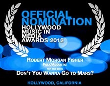 November 16, 2012: Robert Morgan Fisher’s song “Don’t You Wanna Go to Mars?” wins Best Folk/Acoustic Category at the prestigious 2012 Hollywood Music In Media Awards. The song is from his new album Notes for a Novel (available on disc and digital from CDBaby.com) and features Janis Ian lending harmony. Earlier this year, “Don’t You Wanna Go to Mars?” placed in the Top 6 Folk Songs of the Year in the 2012 Song of the Year Competition and has been added to the JPL rotation of songs used to wake up astronauts in space. The star-studded, red-carpet HMMA ceremony took place at the Henry Fonda Theater in Hollywood and winning this award is considered to be a major career milestone for a music artist.